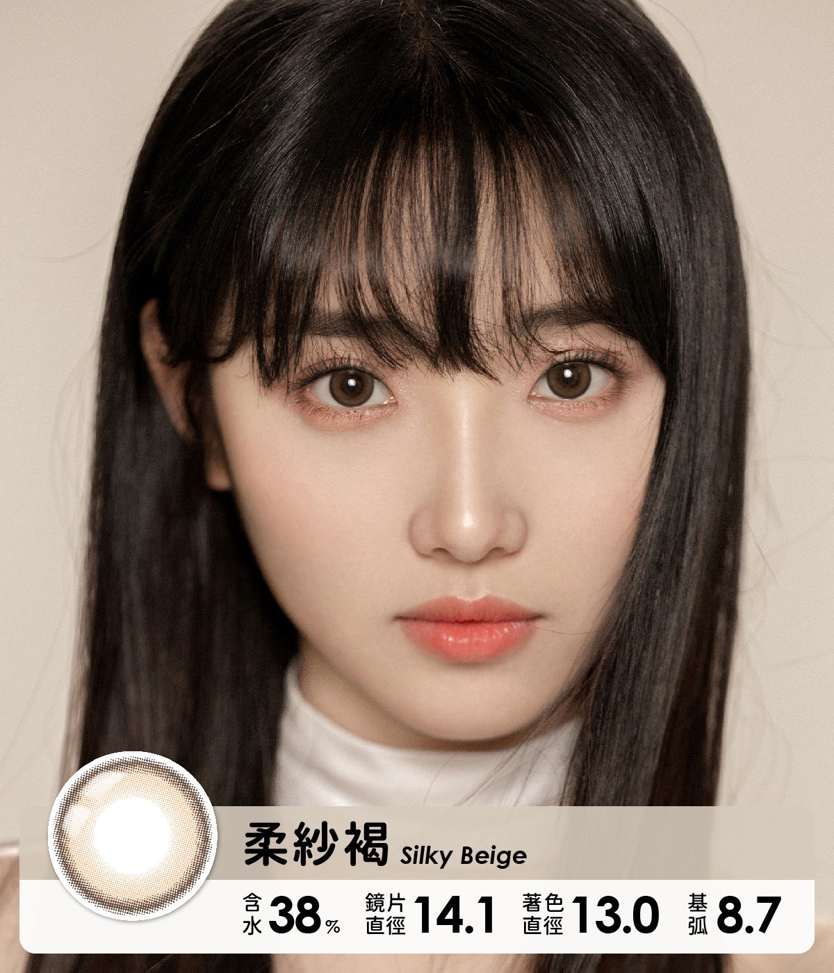 單純的漸層款式,柔和的厚外環搭配米棕色調,配戴效果帶有水潤迷濛感,日常配戴增加桃花的小心機,但絕對不過誇張!