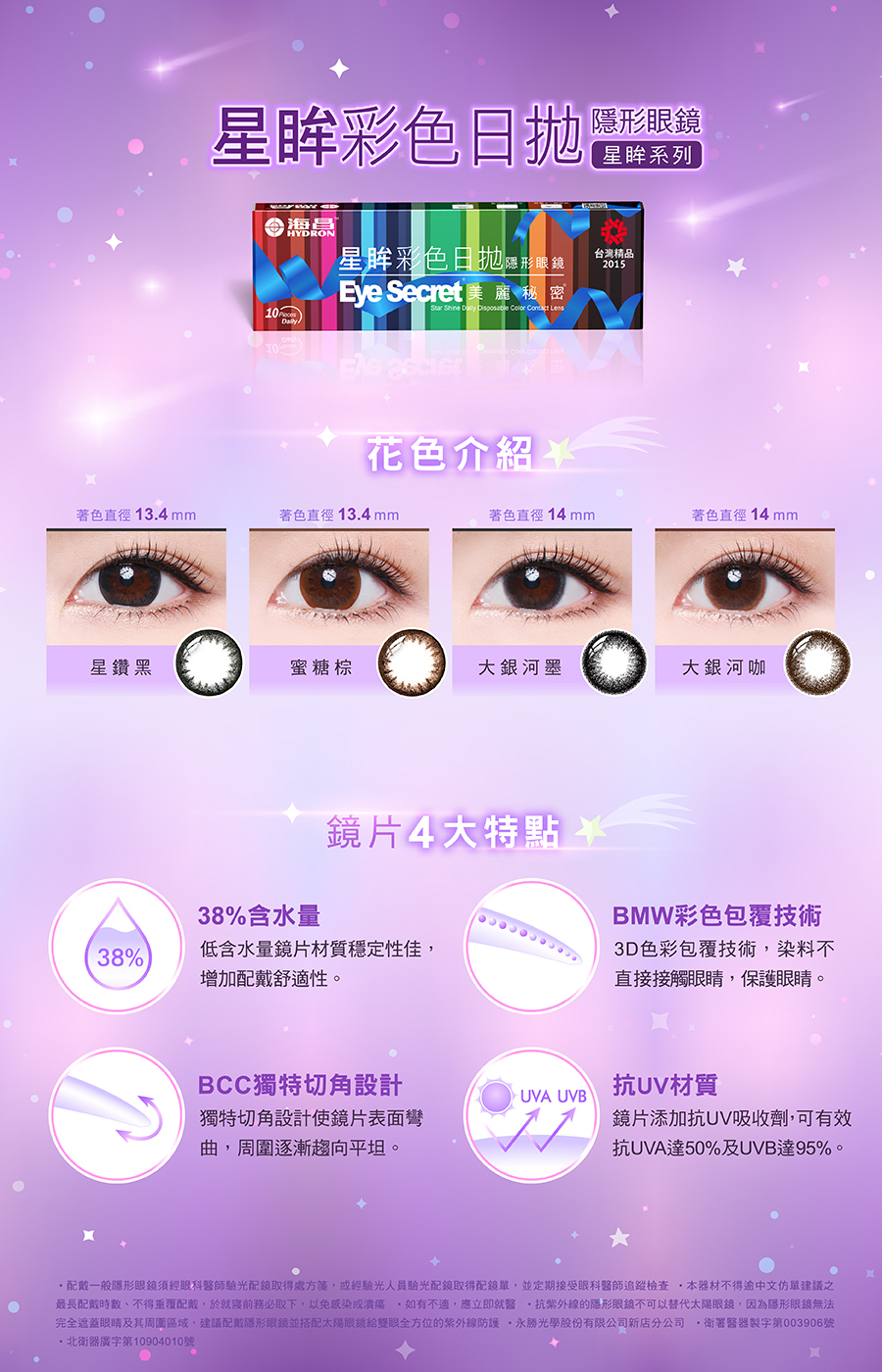*抗紫外線隱形眼鏡並不能取代防護眼鏡(如吸收紫外線的護目鏡或是太陽眼鏡),因為隱形眼鏡並無法完全覆蓋住眼睛及其周圍部分。應遵照指示繼續使用紫外線防護的護目鏡。