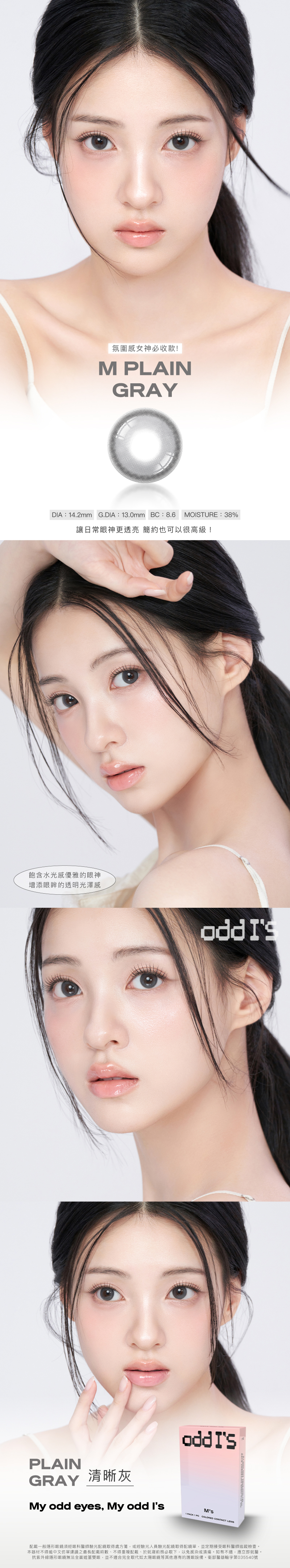 | 商品名稱 | oddI’s 彩色月拋【清晰灰M_Plain Gray】 | ||