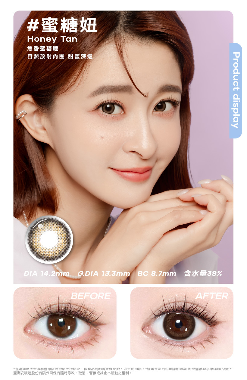 ・配戴一般隱形眼鏡須經眼科醫師或合格驗光人員驗光配鏡,定期接受眼科醫師追蹤檢查・本器材不得逾中文仿單建議之最長配戴時數、不得重覆配戴,於就寢前務必取下,以免感染或潰瘍・如有不適,應立即就醫。衛部醫器製字第004648號、衛部醫器製字第004649號、衛部醫器製字第004650號
