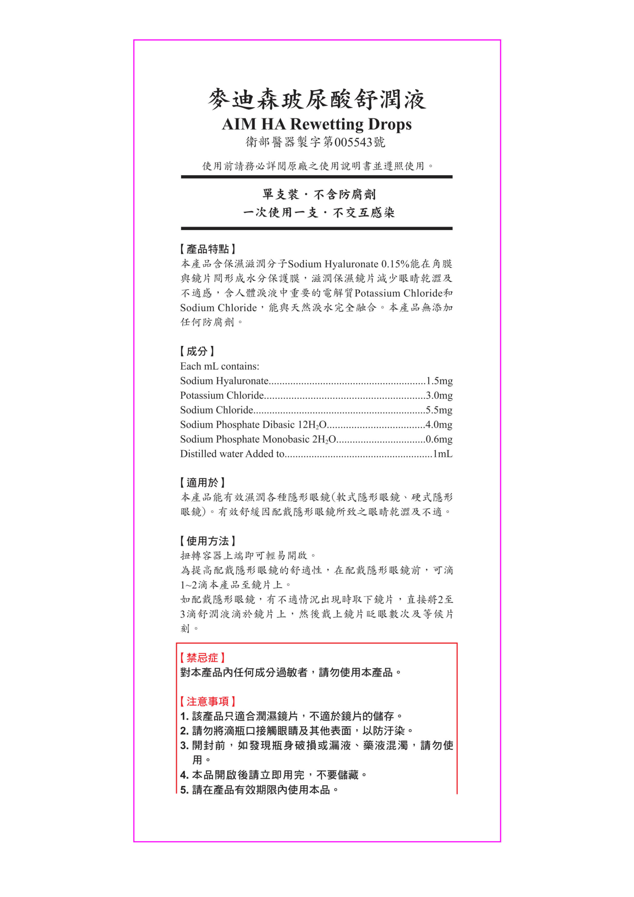 麥迪森 玻尿酸舒潤液 0.5mlx15/盒