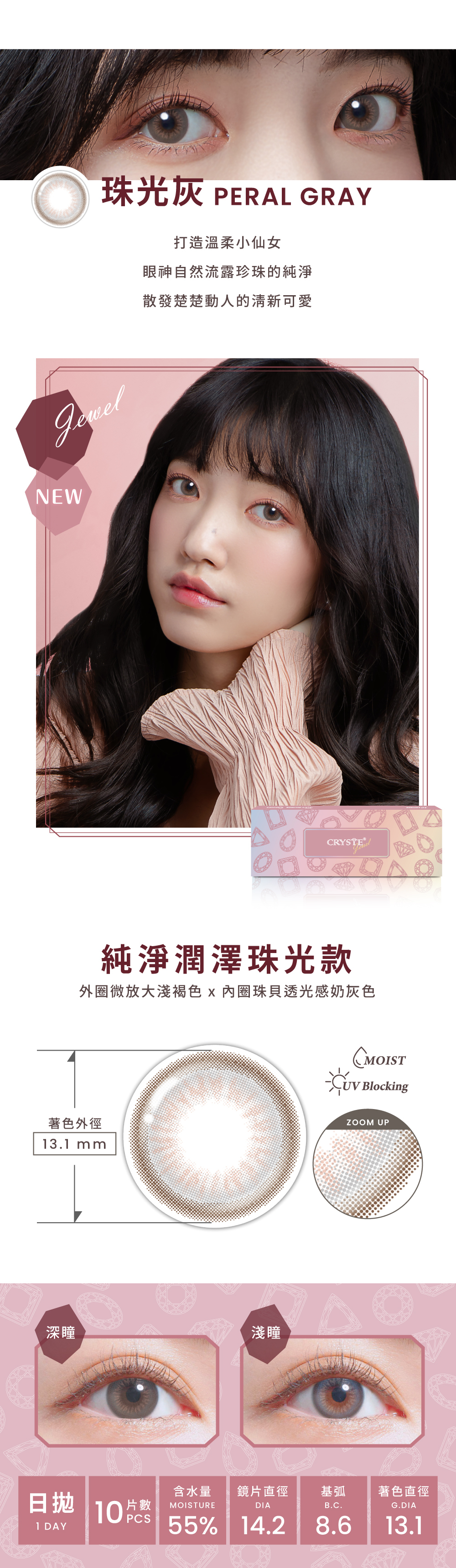 晶瞳 彩色日拋【珠光灰 Peral Gray】(10入)