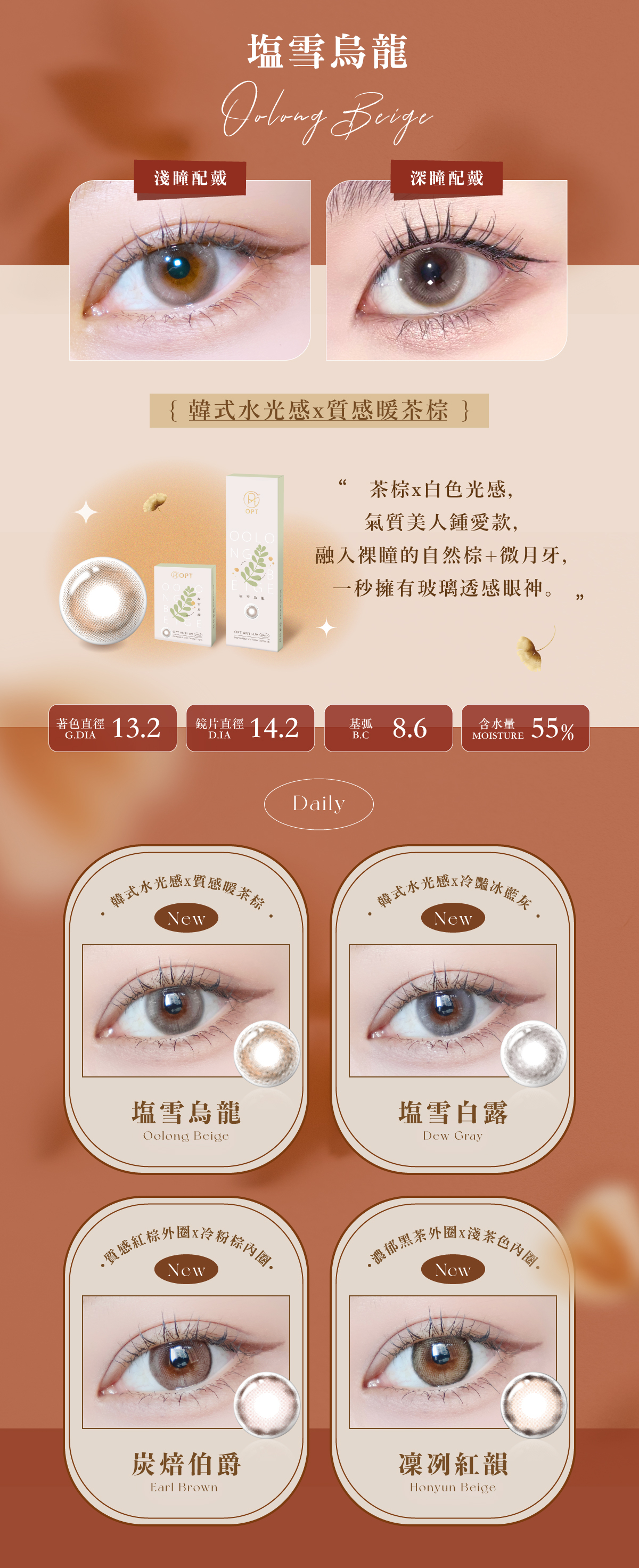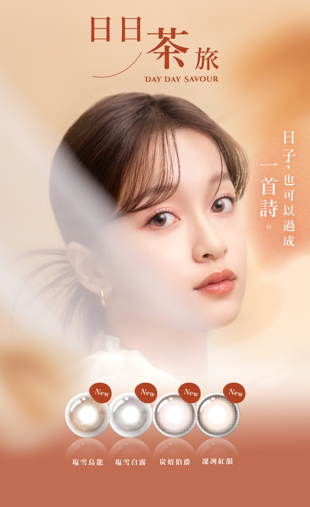 茶棕X白色光感,氣質美人獨愛款,融入裸瞳的自然棕+微月牙,一秒擁有玻璃透感眼神