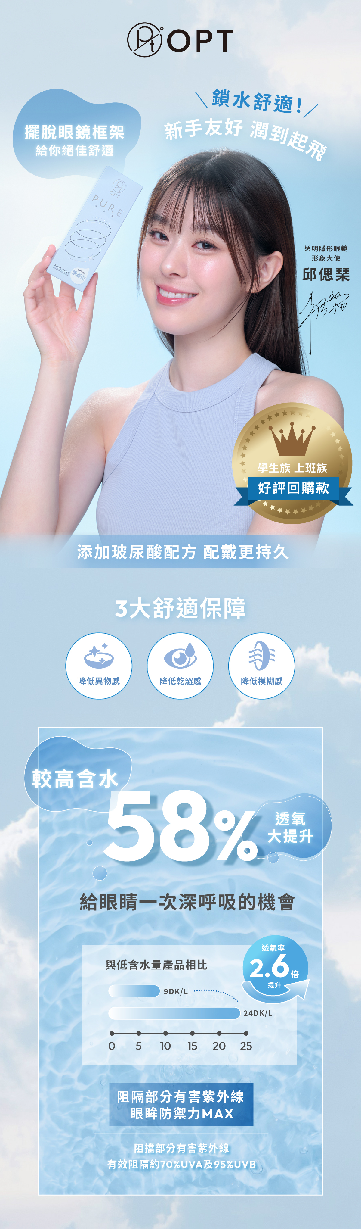 OPT 日拋【PURE淨透潤透明日拋】(30片裝) 全新升級+保養液添加玻尿酸