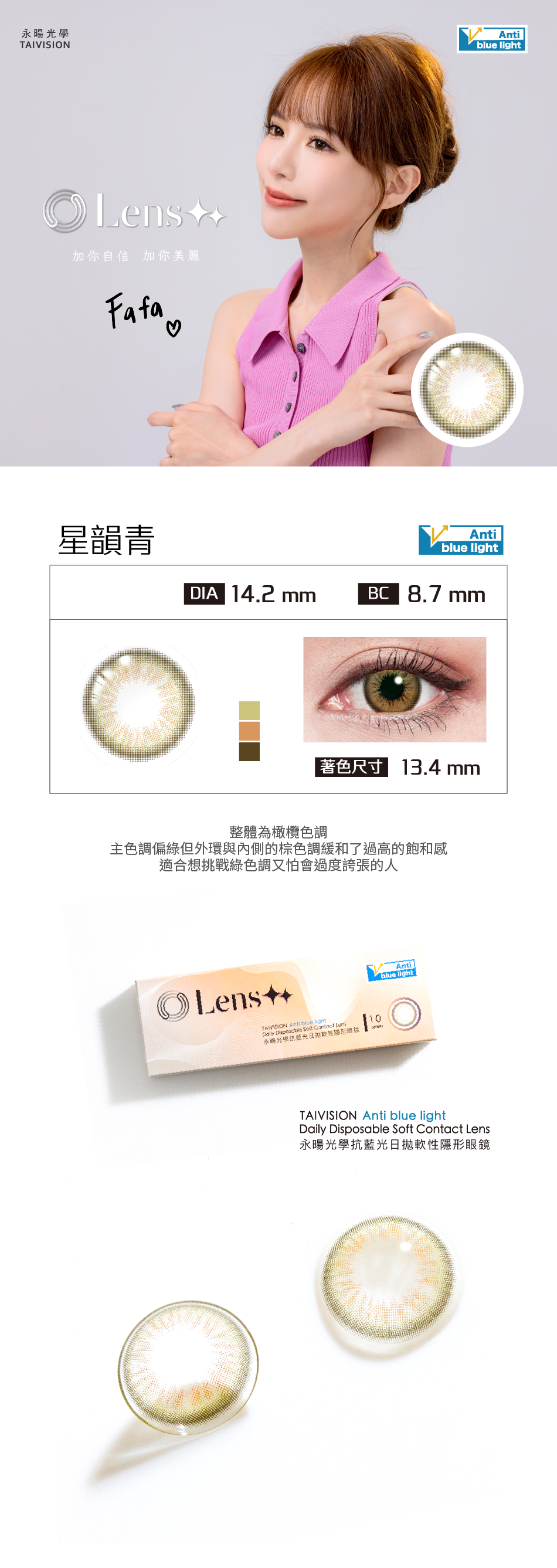 Lens++ 抗藍光彩色日拋【星韻青】(10入)