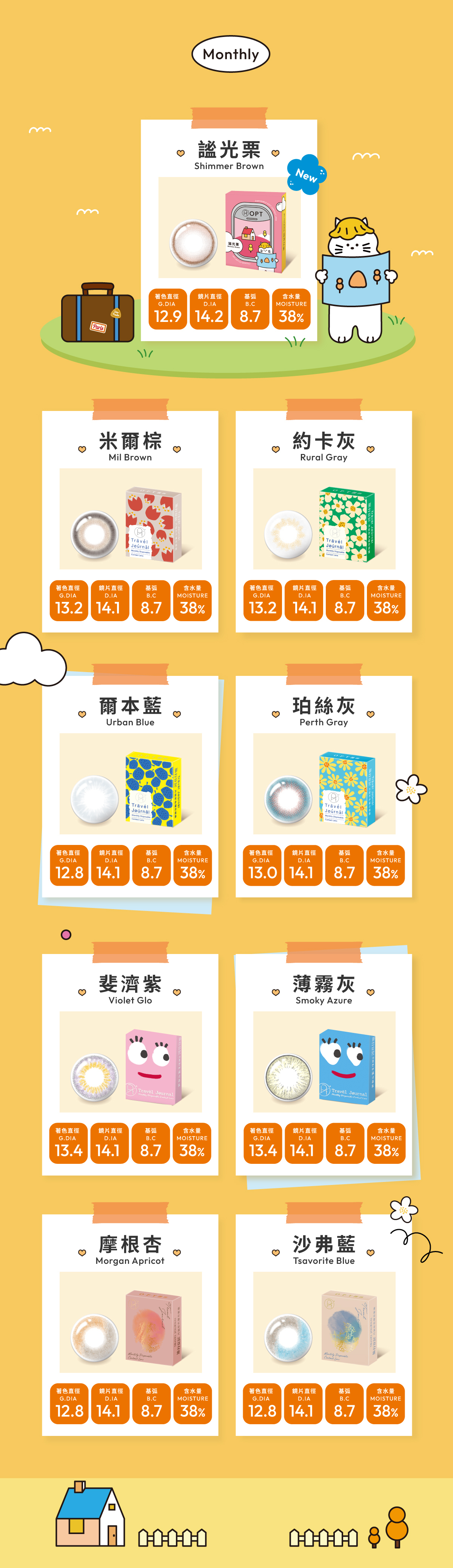 | 週 期 | 彩色月拋 | 基 弧 | 8.7mm |